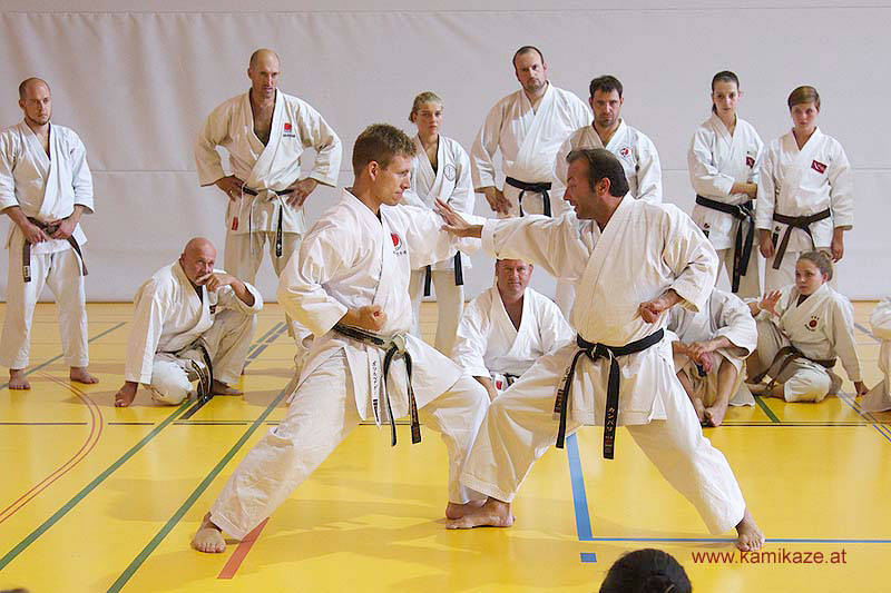 Auch heuer wurde wieder ein tolles Trainierteam, aus Deutschland Samad Azadi und Dr. Claus Fröhlich, aus Japan Senji Nishimura und Kenji Hashimoto, Silvio Campari aus Italien, Ayoub Neghilz aus Frankreich und aus Österreich Bundestrainer Mag. Ewald Roth, Bundestrainer Dragan Leiler und Daniel Devigili, zusammengestellt. Die an Welt-, Vizewelt-, Europa-, Vizeeuropameistern und Weltcupsiegern gespickten Senseis lockten viele Karatekas aus allen Herren Länder an: Finnland, Japan, Deutschland, Tschechien und natürlich "massenhaft" ÖsterreicherInnen. An die 400 TeilnehmerInnen kamen dem Ruf Neuhofens nach und trainierten mit Freude! Die SportlerInnen quartierten sich, wenn sie nicht direkt in Neuhofen oder Umgebung wohnten, in ihren Zelten, in den Gasthäusern Neuhofens und Umgebung oder in der Sporthalle der Hauptschule ein.