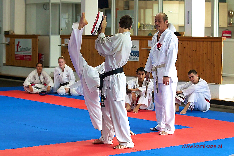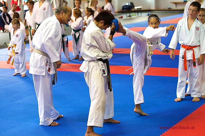 Knappe 400 SportlerInnen nutzten dann ab Donnerstag die einmalige Gelegenheit mit weltbesten Trainern des Karatesports zu trainieren: Samad Azadi, (Deutschland), Seiji Nishimura und Kenji Hashimoto (Japan), Silvio Campari (Italien), Ayoub Neghilz (Frankreich), Mag. Ewald Roth, Dragan Leiler und Daniel Devigili (Österreich) lockten viele Karatekas aus allen Ecken Österreichs und auch aus anderen Ländern (Italien, Schweiz, Deutschland, Slowenien, Tschechien, Schweiz und Japan) an. Besondere Freude machte unter anderem die Teilnahme namhafter Mitglieder des österreichischen Nationalteams (u.a. Alisa Buchinger, Bettina Plank, Nathalie Reiter, Simon Klausberger ,Thomas Kaserer und und und). Auch heuer schlugen wieder viele ihr Zelt am Camp Gelände auf, schliefen im Turnsaal der Hauptschule oder belegten ein Zimmer in der Nähe.