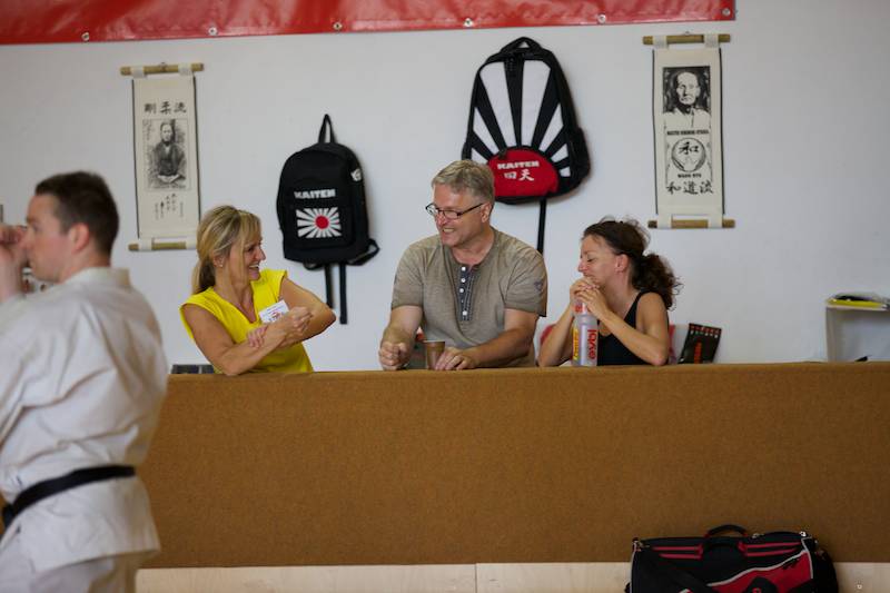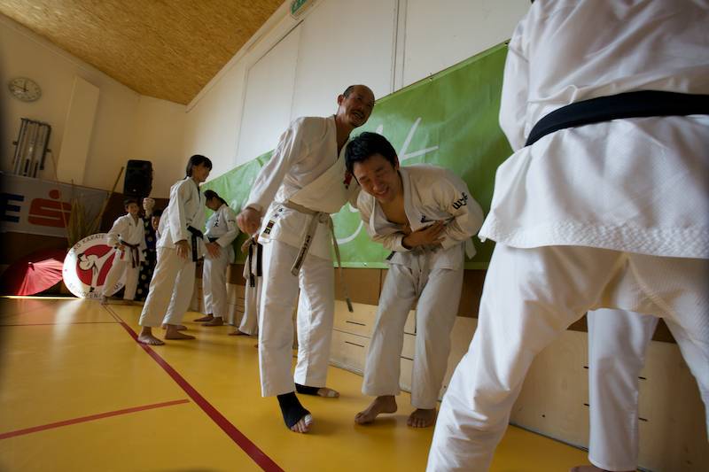 Der Wettergott war erfreulicherweise auch gnädig gestimmt. So konnten die fünf Tage vor Beginn des Camps gestarteten Aufbauarbeiten wieder zeitgerecht abgeschlossen werden: Vom engagierten Camp Team wurde auch heuer voller Elan aufgebaut, organisiert, dekoriert, etliche Quadratmeter Kampfflächen mit Matten gelegt, und die Camp Küche mit diesem Mal auf Asphalt erbautem großen Zelt eingerichtet werden. Teamgeist und Ausdauer bereits vor den Trainings! Schon am Vortag durften wir auch die ersten Gäste begrüßen. Zelte rund ums Forum Neuhofen wurden aufgeschlagen, die beiden Turnsäle der Hauptschule füllten sich mit CampteilnehmerInnen und die ersten Gäste aus dem fernen Japan trafen ein.